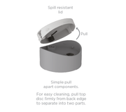 • Easy pop open, pop close spill resistant lid